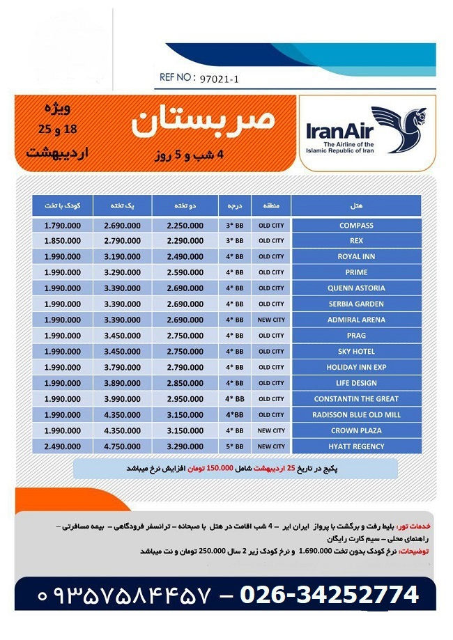 توجه داشته باشید ساعت های پرواز فوق امکان دارد در فصل های مختلف کمی تغییر داشته باشد ولی به طور میانگین تمام پروازها به صورت بالا می باشد .